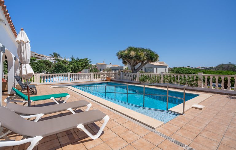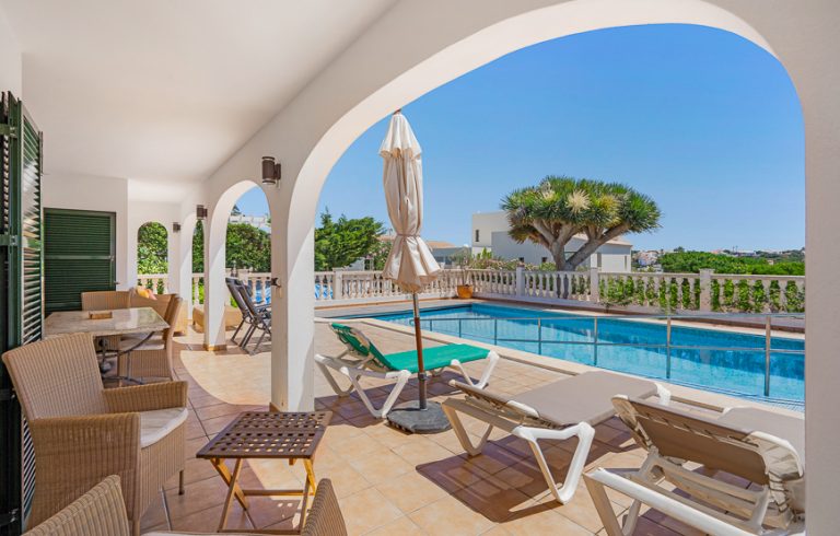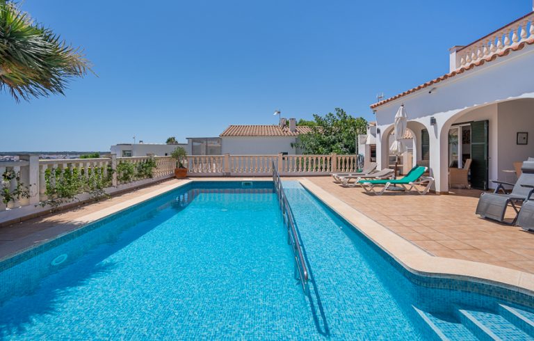The villa sleeps 6 and is conveniently situated just 15 minutes from the airport in the quiet residential only area of Cala Llonga and although the surrounding landscape is hilly, the villa’s ground floor and outside space is completely flat with no awkward steps or thresholds to negotiate. A hire car or use of an adapted taxi is essential. NB There are NO WAVs to hire on Menorca!